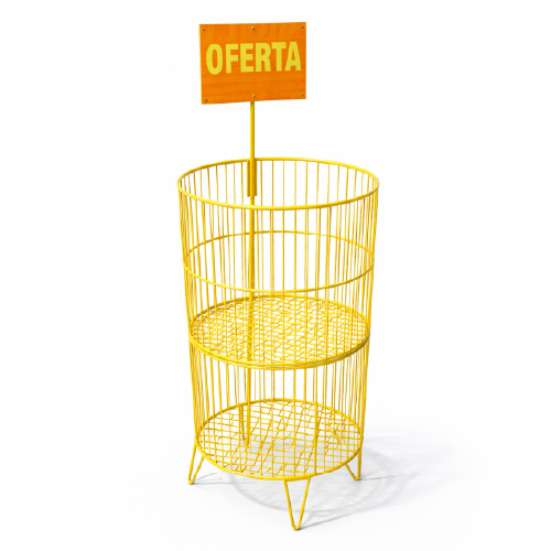 Haz que tu promoción se vea desde cualquier ángulo. Esta canastilla promocional circular está diseñada para captar atención en zonas de alto tráfico y darle más protagonismo a productos de impulso, ofertas y campañas temporales dentro del punto de venta.