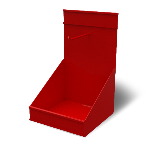 Counter exhibidor pequeño con ganchera y cerca, ideal para productos de impulso, accesorios y referencias pequeñas en punto de venta, retail, supermercados y tiendas. Su diseño ayuda a organizar, exhibir y dar mayor visibilidad al producto en espacios reducidos.