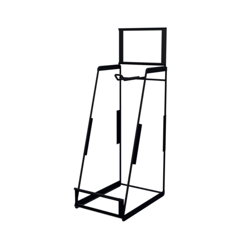 Fabricado en acero de alta resistencia con pintura electrostática, este exhibidor ofrece durabilidad, estabilidad y un acabado profesional ideal para entornos comerciales. Incluye un portagráfica superior que permite comunicar promociones, branding o información del producto, generando mayor impacto visual y atracción en tienda.