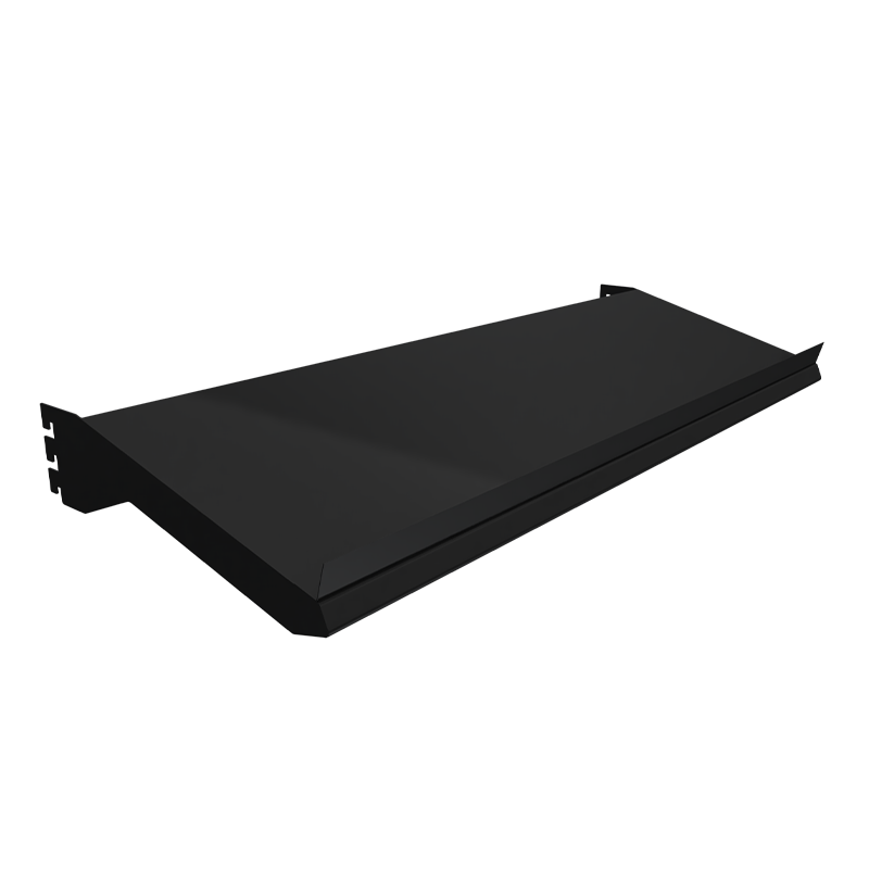 Fabricado en acero de alta resistencia con pintura electrostática, este entrepaño ofrece durabilidad, resistencia al peso y un acabado profesional ideal para entornos comerciales exigentes. Su estructura reforzada tipo bandeja proporciona mayor rigidez en comparación con repisas planas, permitiendo soportar productos más pesados o de mayor volumen.