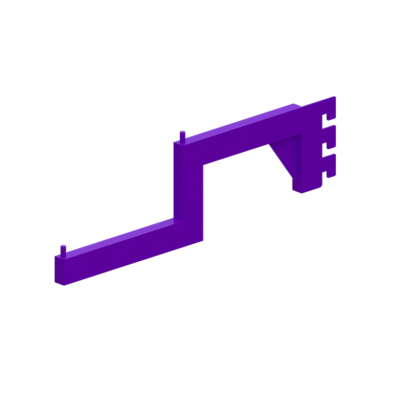 El soporte metálico reforzado para slatwall con pines de retención es ideal para exhibir productos de forma segura, organizada y estable en tiendas y espacios comerciales. Su diseño combina alta capacidad de carga con control de producto, evitando deslizamientos. Fabricado en acero con acabado electrostático, garantiza resistencia y durabilidad.
